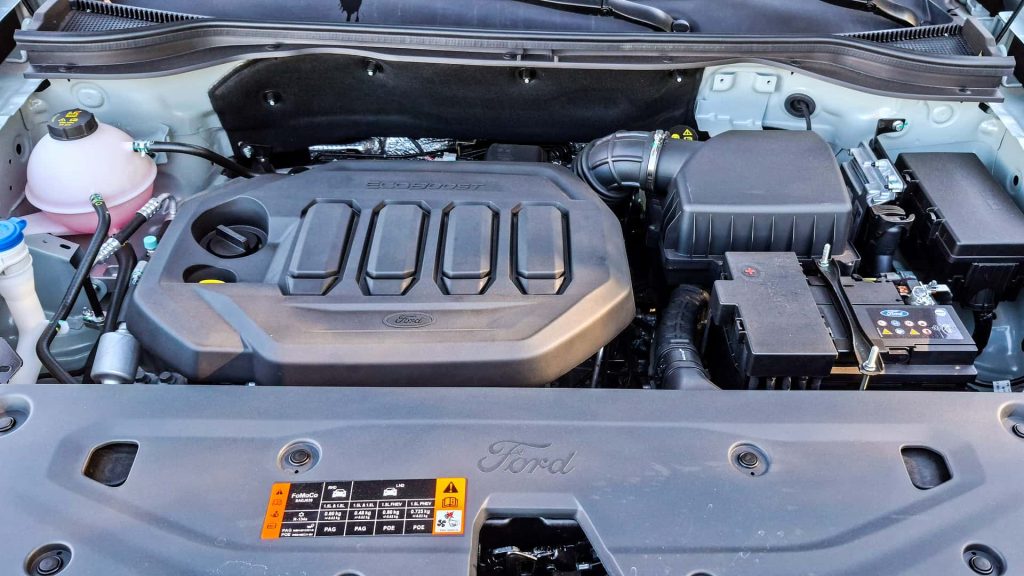 Nada ha cambiado debajo del capot de la Ford Territory. Sigue el mismo propulsor 1.8 Ecoboost de cuatro cilindros, 16 válvulas y turbocompresor, que entrega 185 cv a 5.200 rpm, con un torque de 320 Nm entre las 1.750 y las 3.000 rpm. La transmisión sigue siendo automática de doble embrague y siete marchas.